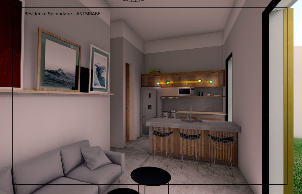 Petite Résidence secondaire de vacances à Madagascar dans un volume blanc aux lignes contemporaines. Le bardage en bois à l’intérieurs comme à l’extérieurs a été le fil conducteur du projet.
