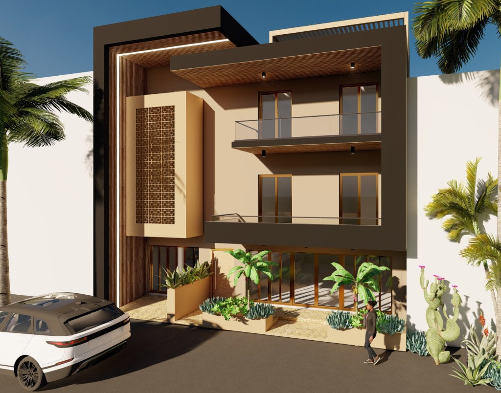 Villa moderniste situé à proximité immédiate de la ville nouvelle de Diamniadio. Elle comprenant sur une parcelle de 150m² un rez de chaussé commercial et des appartements locatifs en R+2.