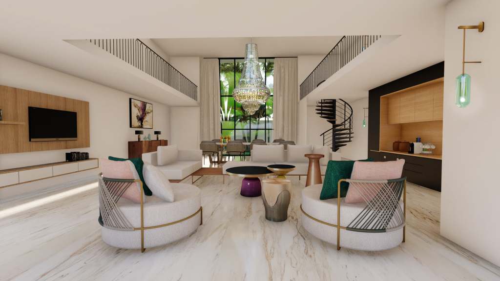 La villa Brigitte se distingue par son écriture classique en façade et son intérieurs résolument contemporain. Situé dans les beaux quartiers de Douala elle se compose d’un résidence principale de 300m² et d’une résidence secondaire de 220m² avec une piscine intérieurs en commun. L’ensemble des chambres donne sur un séjour traversant en double hauteurs.